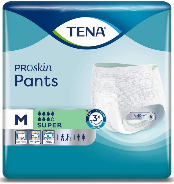 Tena Pants Super es la braga para la incontinencia urinaria especialmente formulada pensando en la tranquilidad y seguridad de sus usuarios, ya sean hombres o mujeres. Su diseño es anatómicamente adaptable a las diferentes formas del cuerpo y muy cómoda de usar durante la noche.