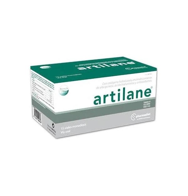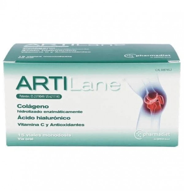 Artilane 15 viales de Masterdiet es un c omplemento alimenticio para obtener una adecuada nutrición articular y de ayuda para reducir el dolor y los procesos inflamatorios asociados al desgaste articular. Características Ayuda a mejorar la movilidad, reducir los procesos inflamatorios y el dolor asociados a la degeneración articular. Modo de empleo Tomar 1 vial al día, bebido directamente o bien diluido en medio vaso de agua. Agitar antes de usar. Artilane puede tomarse de forma indefinida. Se recomienda su utilización durante un periodo mínimo de 2 a 5 meses, empezándose a notar los efectos a partir de las 2 semanas. Composición Compuesto a base de Colágeno hidrolizado enzimáticamente de alta pureza, Ácido Hialurónico, Licopeno, Quercetina y Vitamina C para una adecuada nutrición articular y de ayuda para reducir el dolor y los procesos inflamatorios asociados al desgaste articular. Presentación Envase de15 viales.