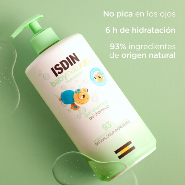 El Gel Champú para bebés Baby Naturals Nutraisdin de ISDIN es un producto diseñado para la higiene diaria de la piel y el cabello del bebé. Con un 93% de ingredientes de origen natural, este gel champú limpia suavemente mientras respeta la delicada piel del bebé, dejando una sensación de hidratación y suavidad.
