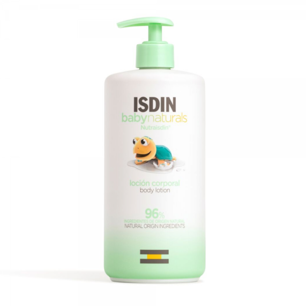 La Loción Corporal Hidratante Baby Naturals Nutraisdin de ISDIN es una loción hidratante especialmente diseñada para bebés, con un 96% de ingredientes de origen natural. Esta loción está formulada para proporcionar hidratación, protección y suavidad a la piel del bebé, con una textura ligera que se absorbe rápidamente.