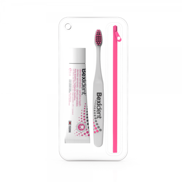 Este kit está diseñado para proporcionar higiene diaria a personas con hipersensibilidad bucodental. Al igual que la pasta dentífrica, ayuda a reducir la sensibilidad dental en 2 días y está indicado para situaciones de sensibilidad causadas por retracción gingival, tratamientos periodontales, desgaste del esmalte, higiene profesional y tratamientos blanqueadores.