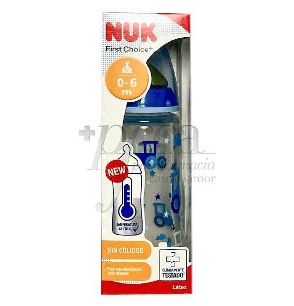 Nuk Biberon Control De Temperatura Latex 0-6M 300ml Bibern indicado para bebs recin nacidos y hasta 6 meses de edad. Los bebs recin nacidos necesitan artculos con unas caractersticas muy especficas debido al tipo de alimentos que toman y la forma de su boca y su mandbula. El bibern para bebs recin nacidos de Nuk es ideal para estas necesidades. Su tetina de ltex de talla M est diseada para la leche y su forma est pensada para respetar la anatoma del beb. Cuenta tambin con el sistema anticlicos NUK AIR SYSTEM. Rellena el bibern con la toma indicada para el beb y cirralo con decisin. Comprueba que la cantidad de comida y la temperatura son las correctas antes de drselo al beb. Voltalo antes de acercrselo a la boca para evitar la entrada de aire.