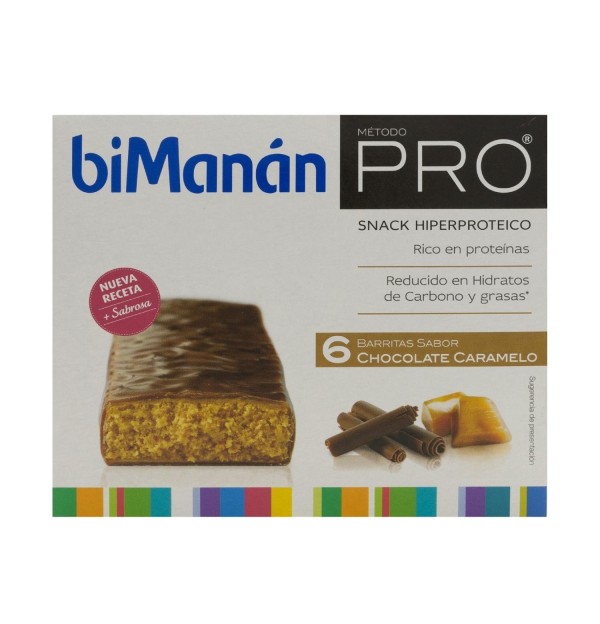 biManán® Pro barritas chocolate y caramelo te ayuda a disfrutar de tu sabor favorito sin afectar a tu dieta alimenticia ni suponer un aumento de calorías, ya que estas barritas son hipocalóricas e hiperproteicas.