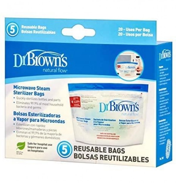 Dr. Brown's 1 bolsa esterilizacion a vapor microondas es una forma perfecta de mantener los biberones y chupetes de tu bebé perfectamente higiénicos en todo momento. Esteriliza rápidamente, para que todos los componentes del biberón estén completamente libres de gérmenes y bacterias.