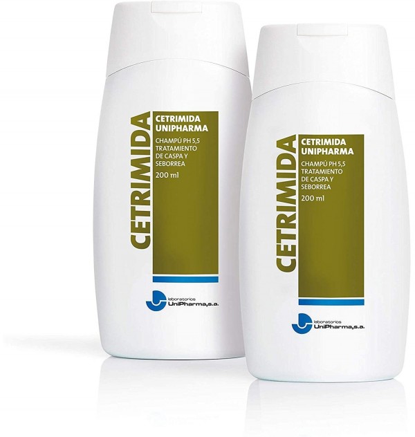 Unipharma cetrimida champú 200ml es un suave limpiador capilar con una accion bactericida y solubilizante, pensado para frenar la aparicion de la descamación y decostración de las áreas afectadas por la caspa. la seborrea y el eccema. Al mismo tiempo, minimiza el exceso de grasa, eliminando la untuosidad del cuero cabelludo ya que presenta activos con una alta potencia antiséptica y antiseborréica.