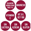 Contenidos medios por dosis diaria de 3 cucharaditas de postre (7,5 g): Colágeno hidrolizado 5,2 g, magnesio 227 mg (61% VRN*), vitamina C 24 mg (30% VRN*), tiamina 0,33 mg (30% VRN*), riboflavina 0,41 mg (29% VRN*) y vitamina B6 0,42 mg (30% VRN*).