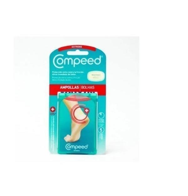 Compeed Ampollas Extreme proporciona protección extra contra la fricción y esté especialmente indicado para los momentos más exigentes, para los deportistas y para todos los amantes de las actividades más extremas. Presenta una estructura en forma de panal, dotada de un mayor grosor respecto a los demás apósitos que aporta un 20% más de protección contra la fricción*, proporcionando una mayor flexibilidad y una mayor adaptación al pie. Proporciona un alivio natural del dolor que causa la ampolla, de forma instantánea. Al absorber la humedad natural de la piel forma un gel suave protector que asegura el efecto almohadilla optimo que reduce la fricción y la presión. Su zona almohadillada alivia instantáneamente el dolor y protege del rozamiento. Permanece en su sitio incluso durante actividades deportivas intensas Utilizado por los fisioterapeutas de la ATP Cuando el rozamiento de los zapatos produce la eliminación de las capas superficiales de la piel y se forma una ampolla, Compeed actúa como una segunda piel: Protege y tiene efecto almohadilla sobre el rozamiento, reduciendo instantáneamente el dolor de las ampollas. Repele el agua, la suciedad y los gérmenes previniendo las infecciones. Compeed Ampollas permanece en su lugar durante varios días, favoreciendo la rápida cicatrización natural de la piel. Uso Utilizar Compeed Ampollas al menor signo de rozamiento para prevenir las ampollas, sobre las ampollas ya formadas para aliviar el dolor y acelerar la cicatrización. Pegar Compeed Ampollas sobre la piel limpia y seca, no se mueve en 3 días.