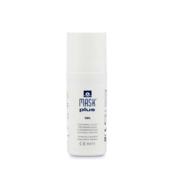 MASK PLUS es un producto sanitario no estéril específico para prevenir las complicaciones del acné provocadas por factores externos. Su fórmula, sin alcohol etílico ni perfume, contiene Alcohol Polivinílico capaz de formar una capa invisible no oclusiva que aísla y protege la piel de aquellos factores externos que pueden empeorar la patología del acné. El Ácido Glicólico y el Ácido Retinoico, gracias a su función exfoliante, favorecen la eliminación mecánica de las células muertas. La actividad accesoria de la Clindamicina contenida en el producto contrarresta la proliferación bacteriana, manteniendo inalterado el nivel de la carga microbiana total.