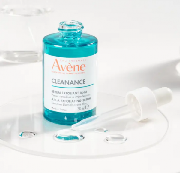El AVÈNE Eau Thermale Sérum exfoliant A.H.A. Cleanance es un sérum exfoliante que contiene ácidos naturales patentados, siendo 1,5 veces más eficaz que el ácido salicílico para lograr una textura de piel refinada en tan solo 10 días. Este sérum utiliza una combinación exclusiva de ácidos láctico y succínico para reducir imperfecciones, poros y marcas en la piel.