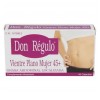 Don Regulo Vientre Plano Mujer 45+ esta formulado para ayudar a mantener el vientre plano y rebajar la grasa abdominal. Don Regulo Vientre Plano Mujer 45+ es un complemento natural formulado para ayudar a mantener el vientre plano y rebajar la grasa abdominal en mujeres mayores de 45 años. INDICACIONES Don Regulo Vientre Plano Mujer 45+ de Pharma OTC es un complemento natural especialmente formulado para ayudar a mantener el vientre plano y rebajar la grasa abdominal especialmente indicado para mujeres mayores de 45 años. COMPOSICIÓN Fructooligosacaridos (Acción Prebiótica) Glúcidos de origen vegetal que regeneran la flora intestinal (bifidobacterias que viven en nuestro organismo), así mismo favorecen el tránsito intestinal facilitando la obtención de un vientre plano. Lactobacillus (Acción probiótica) Refuerzan el crecimiento de la flora intestinal facilitando la obtención de un vientre plano. Alcachofa Favorece la digestión, ayudando al tránsito intestinal favoraciendo un vientre plano. Té verde Con propiedades altamente depurativas y antioxidantes Anís Acción carminativa, facilita la digestión, disminuye la formación de gases y facilita su expulsión, reduciendo así la hinchazón de vientre. MODO DE USO Se recomienda tomar 2 cápsulas antes de la comida y 2 cápsulas antes de la cena.