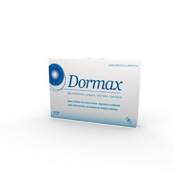 Dormax 30 cápsulas. Es el producto ideal para tomar en aquellos momentos de mucho estrés y tensión o cuando se desea descansar profundamente. La combinación de sus elementos naturales (extracto seco de amapola califórnica, extracto seco de flor de pasiflora, y el extracto seco de raíz de valeriana) con la melatonina te permitirán conciliar y mantener el sueño durante toda la noche con una sensación de relajación y alivio.