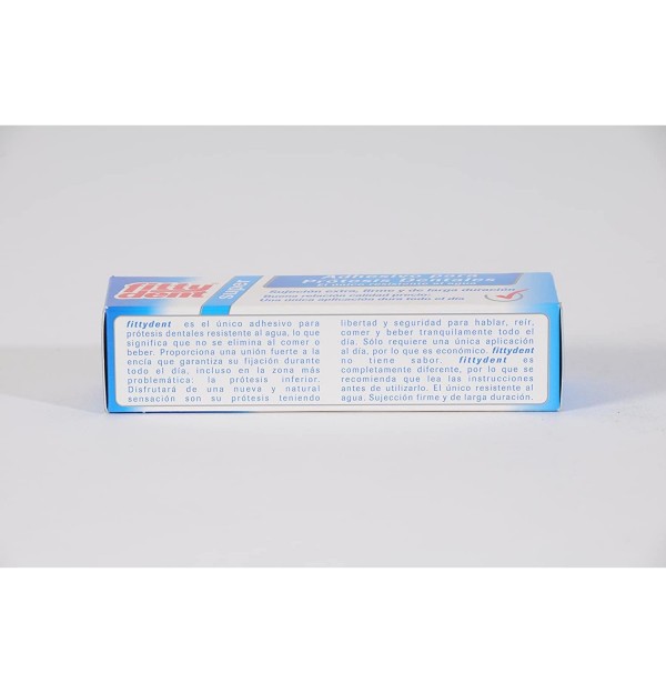 Fittydent es un adhesivo dental que, mediante un novedoso sistema, permite mejorar la unión de la prótesis dental y la encía. Por su fórmula, el adhesivo para dentaduras postizas ofrecerá una resistencia especial, incluso frente a líquidos fríos o calientes y la saliva.