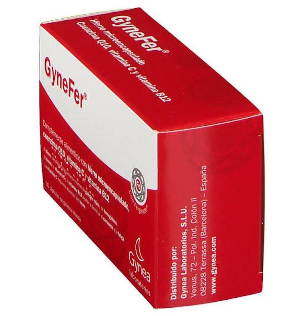Aumenta los niveles de hierro en el organismo y revitaliza el cuerpo 30cáps Cuando tu cuerpo sufre algún tipo de cansancio o fatiga puede que presente un desequilibrio en sus niveles de hierro. Los complementos alimenticios son una manera perfecta de darle a tu cuerpo un extra de energía, para que pueda desarrollar su actividad con total normalidad. Gynefer es un complemento nutricional, formulado a base de hierro microencapsulado, perfecto para mejorar los estados carenciales de hierro en el organismo. Contribuye a la formación de glóbulos rojos y hemoglobina, necesarios para que el cuerpo actúe con normalidad. Enriquecido con vitamina C, B12 y coenzima Q10 consigue proteger y reforzar el organismo frente al daño externo, impidiendo que el cuerpo sufra signos de cansancio y agotamiento. Conseguirás revitalizar tu cuerpo para desarrollar tu actividad diaria con total normalidad. *Combinar con dieta equilibrada y hábitos de vida saludables. ¡Dale a tu cuerpo la energía que necesita cada día! Modo de empleo Tomar 1 cápsula al día, preferentemente antes/durante/después de una comida, acompañada de líquidos.