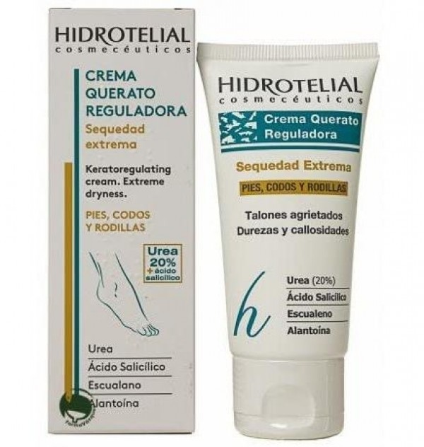 La crema queratoreguladora de Hidrotelial está especialmente diseñada para tratar la sequedad de los codos y rodillas, así como también para suavizar los talones y pies engrosados, agrietados o con callosidades causadas por el roce y la sobrepresión del calzado. Enriquecida con: