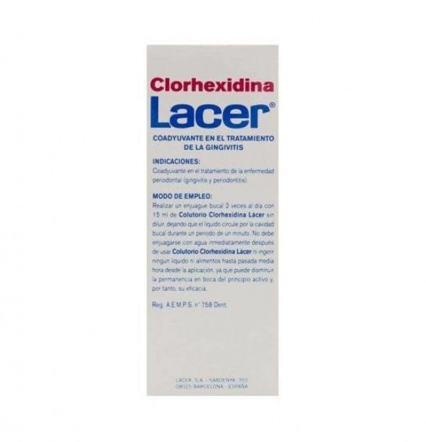 Colutorio Lacer Clorhexidina 500ml Es un colutorio que elimina la placa bacteriana existente e inhibe la formación de nueva, destruyendo las bacterias responsables de su formación. La acción del colutorio es rápida y se mantiene el efecto durante un largo periodo de tiempo. La clorhexidina, componente principal, es un antiséptico de amplio espectro que se una a diversas superficies bucodentales formando un sistema de liberación sostenida. ¿Cómo usar Lacer Enjuague Bucal Colohexidina 500ml? Se recomienda realizar un enjuague bucal un par veces al día con 15 ml de Colutorio sin diluir. Se debe dejar que el colutorio circule por la cavidad bucal durante un período de un minuto. Una vez efectuado el enjuague no se recomienda aclarar la boca con agua, ni ingerir alimentos ni líquidos hasta media hora después de la aplicación, ya que esto podría reducir el efecto del colutorio al disminuir la cantidad de principio activo. ¿Dónde puede encontrar Lacer Clorhexidina Colutorio de 500ml? En la sección de Higiene Bucal de Farmadistrict encontrará los productos de Lacer, uno de los laboratorios de referencia en farmacias para el tratamiento de problemas de Encías. Podrá encontrarlo muy barato gracias a nuestras promociones y descuentos. Además se lo llevamos a casa, no lo dude, empiece a tratar sus encías a un precio razonable.