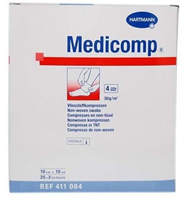 Medicomp comprensas estériles con una fácil solución a la hora de tratar heridas o cortes que generen hemorragia intensa. Son altamente absorbentes y resistentes, además poseen un tacto suave y agradable que no daña la piel.