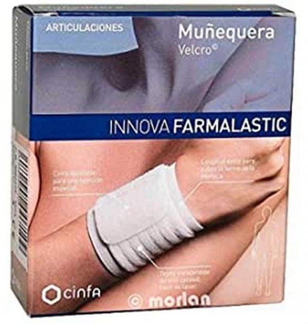 Farmalastic Innova muñequera velcro dispone de una doble sujeción con refuerzo ajustable de velcro que permite graduar la compresión de la muñeca. Su longitud está especialmente diseñada para cubrir perfectamente la muñeca.