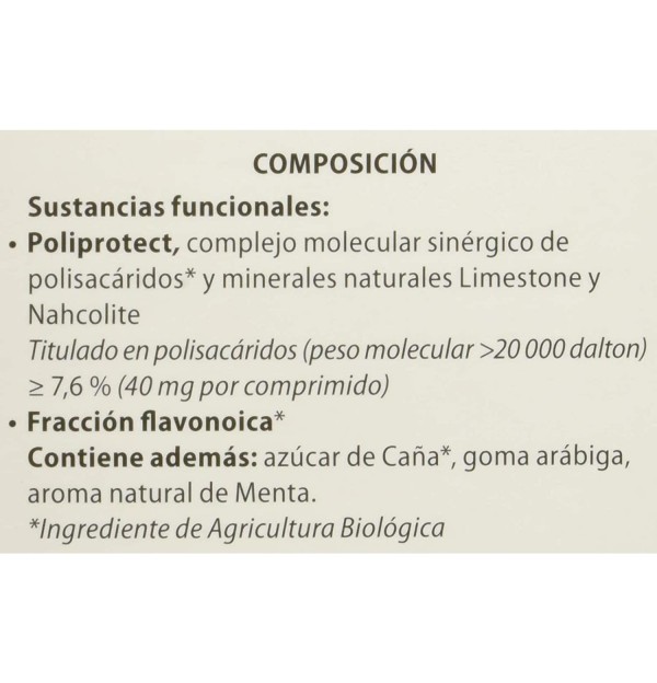 Titulado en polisacáridos (peso molecular >20 000 dalton) ≥7,6 % (40 mg por comprimido)