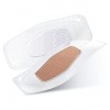 Además de ser resistente al agua se adhiere a la piel húmeda, flexible y acolchada para una mayor adhesión, esteril y de goma natural sin contener latex.