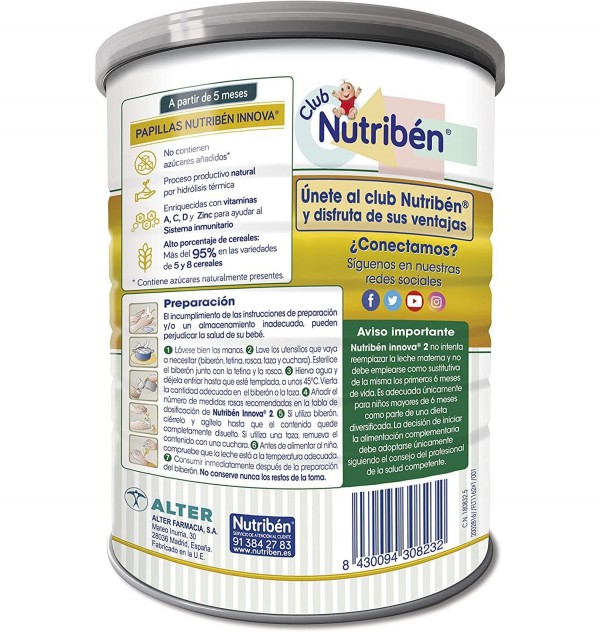 Nutriben Pack Innova Leche 2 800 Gr + Papilla + 2 Tarritos la leche materna es el mejor alimento para el bebé, pero a partir de los 6 meses, complementar y estimular al metabolismo del bebé será provechoso para él.