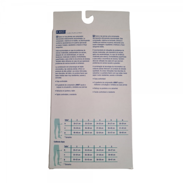 - Compresión graduada que mejora el flujo sanguíneo y ayuda a prevenir la hinchazón.