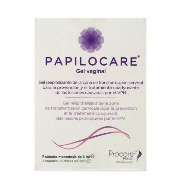 Procare Health Papilocare Gel Vaginal 7x5ml es un producto en gel reepitalizante para prevenir lesiones LSIL en la zona de transformación cérvico-vaginal, causadas por el VPH. Este gel reequilibra la microbiota vaginal, respeta el pH natural y ayuda a mejorar la salud de la zona íntima de la mujer. Además, contribuye a favorecer las relaciones sexuales y es compatible con el uso de preservativos.