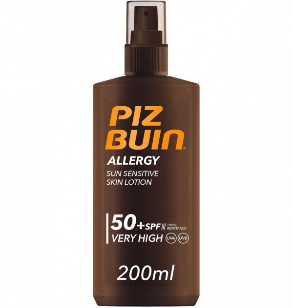 El protector solar Allergy de Piz Buin® está formulado a base Calmanelle, un complejo protector que refuerza las defensas de la piel contra los rayos UV y ayuda a incrementar la tolerancia al sol. Su formato en spray está indicado para pieles sensibles al sol, se absorbe rápidamente e hidrata la piel por horas a la vez que ayuda a prevenir la descamación.
