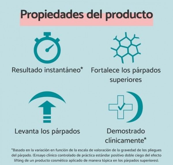 Incorpora una innovadora tecnología que activa, eleva y reafirma de manera inmediata la piel de los párpados.