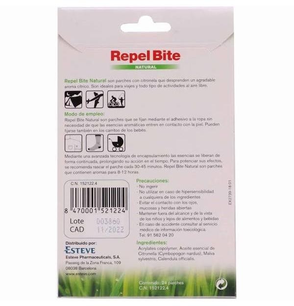 • Repel Bite Natural Parches Ropa C/ Citronella (24 Aplicaciones) Repel Bite Natural Parches Ropa C/ Citronella (24 Aplicaciones)