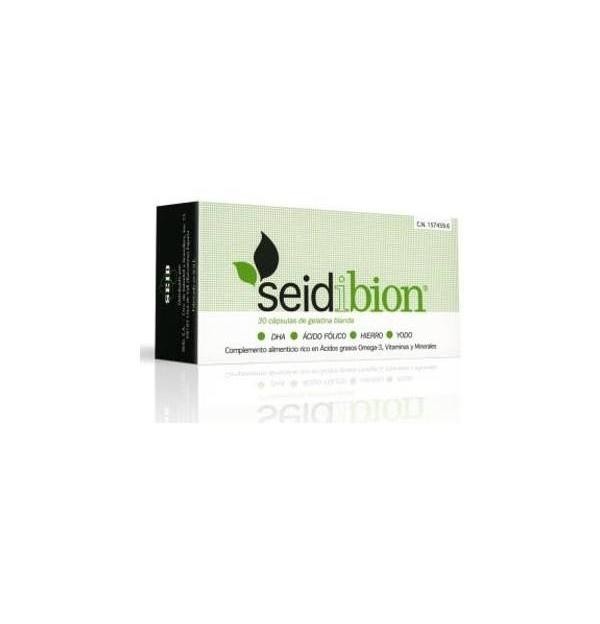 Es un complemento alimenticio que ayuda a cubrir las necesidades nutricionales de la mujer antes de la concepción y durante el embarazo y la lactancia. Durante el embarazo y la lactancia, se produce una demanda energética superior, que requiere un mayor nivel nutricional por parte de la mujer. Seidibion es un complemento alimenticio que ayuda a cubrir las necesidades nutricionales de la mujer antes de la concepción, durante el embarazo y durante la lactancia. Seidibion es un complemento alimenticio equilibrado y rico en ácidos grasos Omega-3, vitaminas (en especial Ácido Fólico, Vitamina B9 y vitamina B12) y minerales (como el hierro o el yodo). Existen numerosas evidencias sobre los beneficios asociados a la ingesta de estos micronutrientes. El Omega- 3 aporta beneficios estructurales, funcionales y energéticos, tanto para la madre como para el feto. El ácido fólico y la vitamina B-12 ayudan a prevenir los defectos del Tubo Neural y otras malformaciones congénitas. El hierro reduce el riesgo de anemia y el yodo es imprescindible para la síntesis de las hormonas tiroideas. Modo de empleo: Tomar una cápsula al día, preferentemente antes de una comida, junto con un vaso de agua.