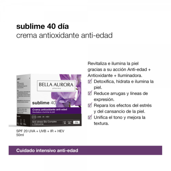 Sublime 40 Día Crema Antioxidante Anti-edad, 50 ml. - Bella Aurora