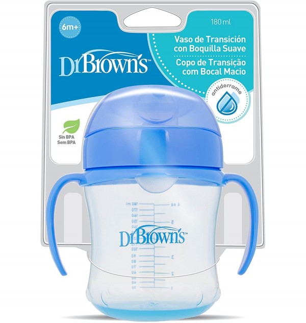 Dr Brown's Natural Flow taza educativa +6M está específicamente diseñado para los bebés que empiezan a utilizar ellos solitos sus vasitos, estimulando su aprendizaje y ayudándoles a conseguir mayor independiencia en su rutina diaria.