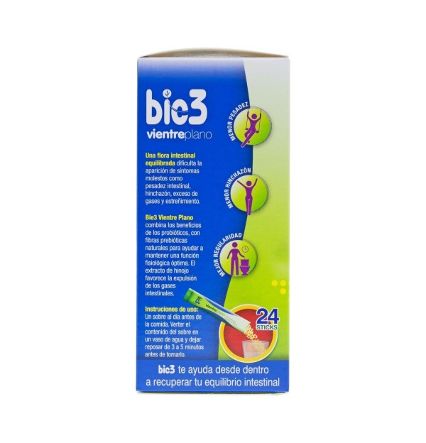 Bio3 Vientre Plano Bienestar Digestivo 24uds es un complemento alimenticio que logra mantener el equilibrio de la flora intestinal en los procesos de adelgazamiento, acabando con el hinchazón y la pesadez. Formulado con una rica mezcla de probióticos, fibras prebióticas y extracto de hinojo, consigue mantener una función fisiológica óptima.