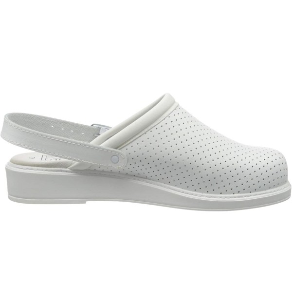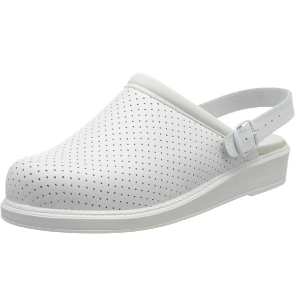 Zueco sanitario unisex de piel con plantilla anatomica antibacteriana. Zuecos de horma ancha para personas con sobrepeso o pies anchos.